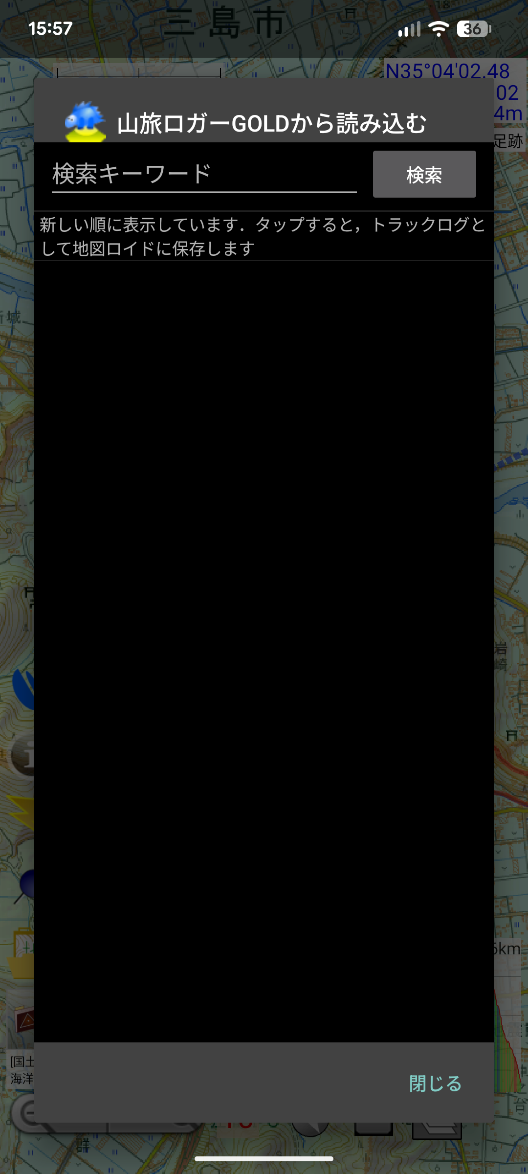 今回のアップデートからか定かではありませんが、山旅ロガーからトラックログの読み込みが出来なくなっています。
